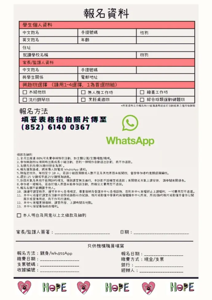 2. 請將報名表發送到負責同工WhatsApp (6140 0367).